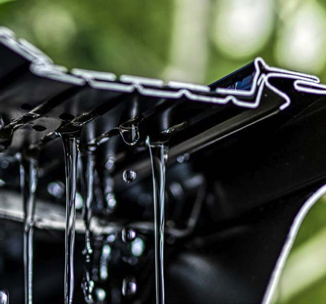 La technologie Eclipse™ avec ses trous décalés agit comme un filtre parfait : l’eau de pluie s’écoule librement, tandis que les aiguilles de pin et les feuilles restent à l’extérieur. Résultat : vos gouttières ne se bouchent jamais et vous profitez d’une maison protégée, sans entretien inutile.
